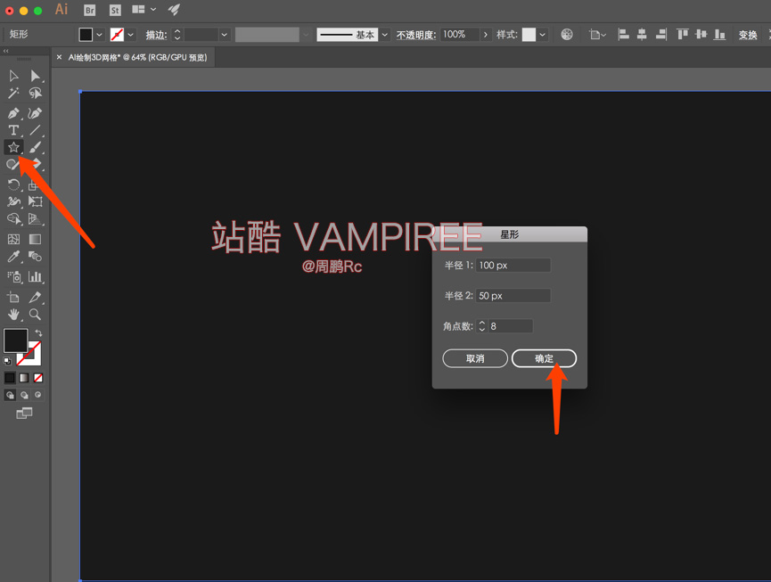 然后点击星形绘制工具,参数设置如下,点击确定即可。