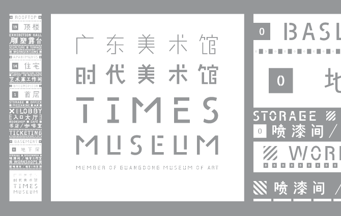 广州时代博美术馆的导视系统由荷兰Nivard Thoes设计。他们为博物馆量身定做了中英文字体的激光切割的不锈钢标牌和模板,应用于墙壁和地板上,高品质的质感呈现出别样的视觉魅力。