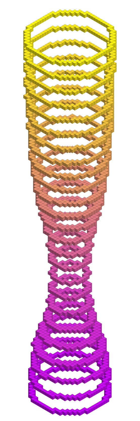 1.把一条曲线经过虚拟旋转“变成”3D马赛克堆积出的实体形态,类似3D软件的扫描建模;