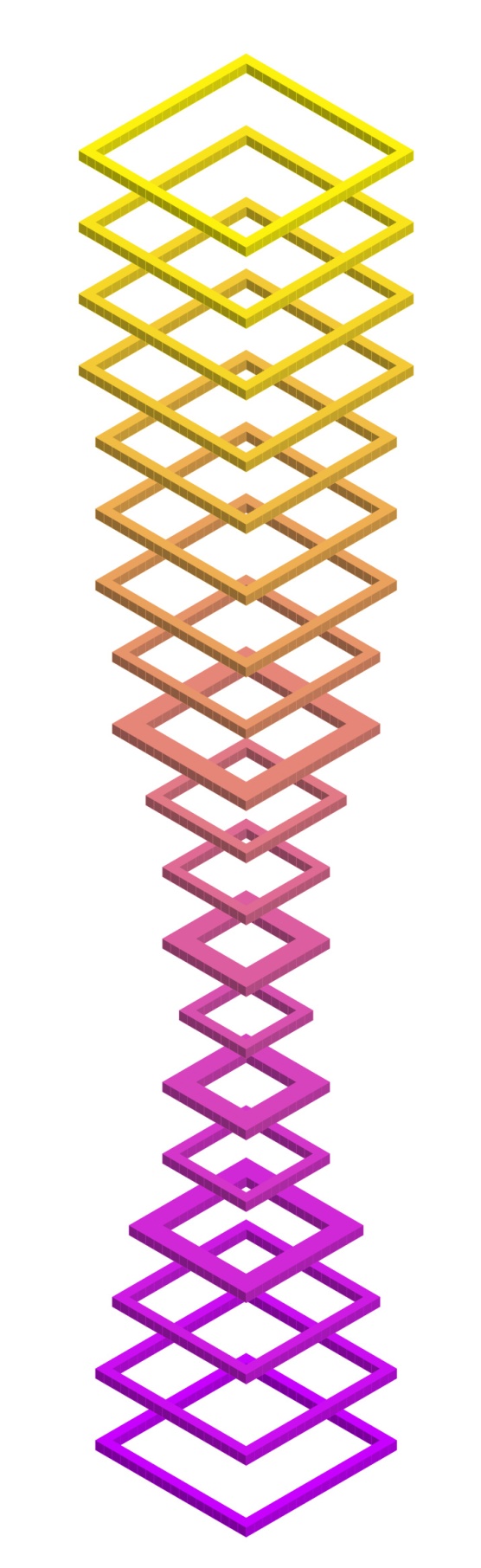 3.将3D马赛克炸开,观察其层间组织结构(话说,作者为了实现这个概念也挺拼的,所有马赛克都做齐了,一块不少,包括被遮挡看不见的)。
