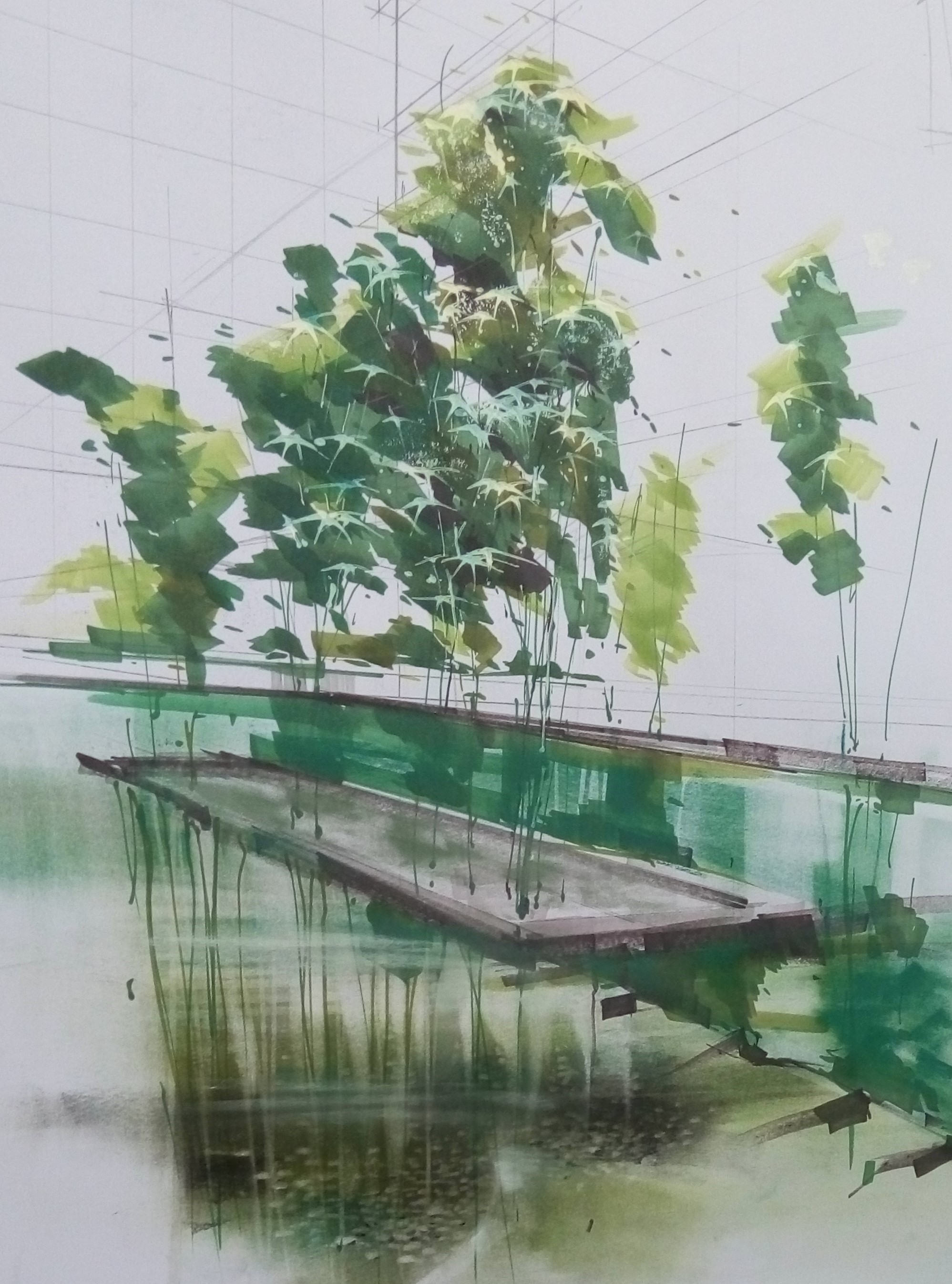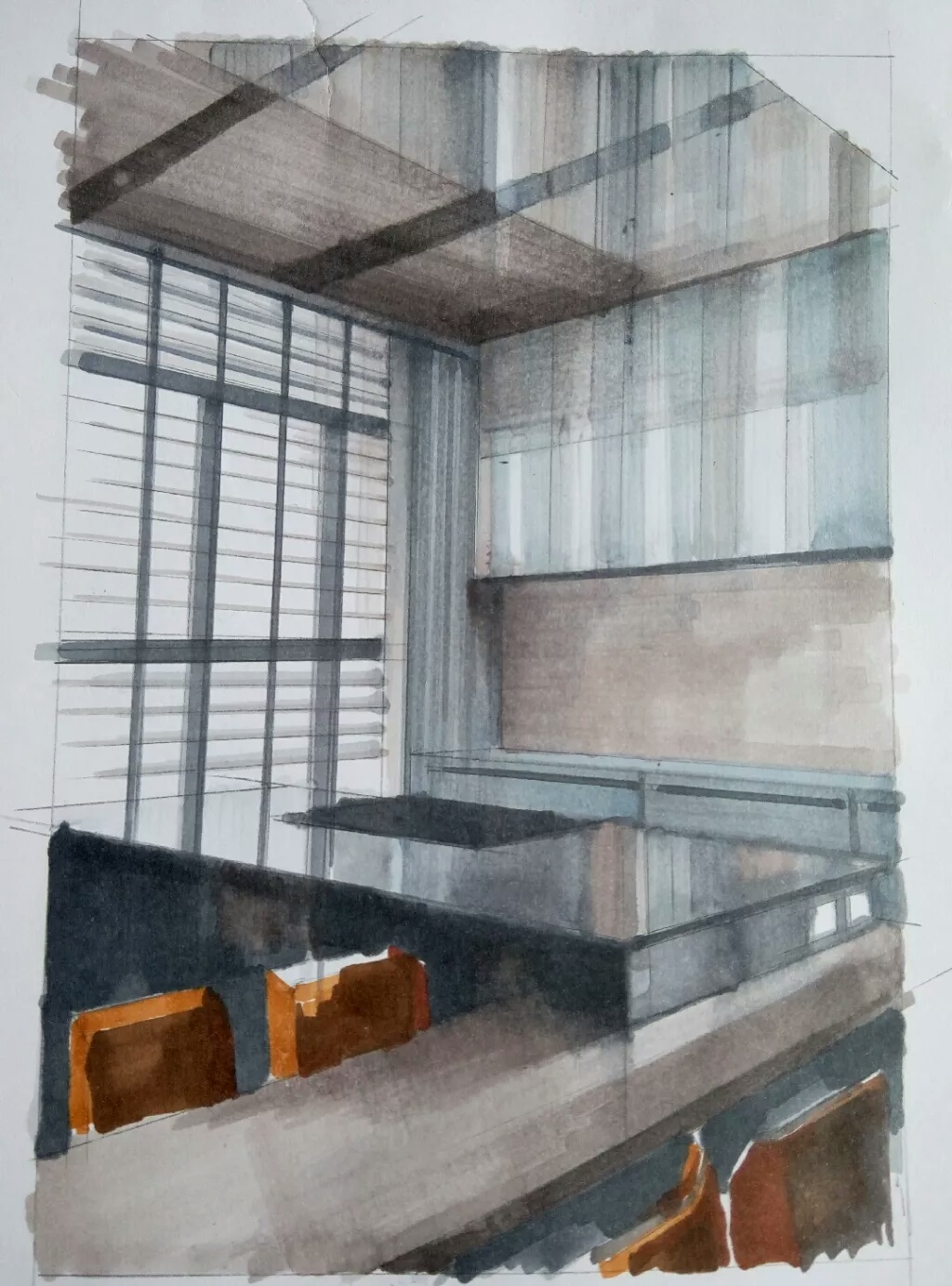 马克笔+色粉+痱子粉多种工具的结合使用。