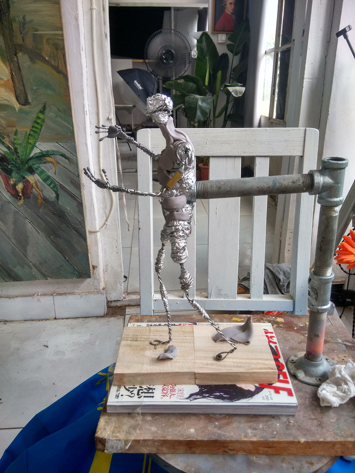 用铝丝和锡箔纸搭出骨架,以便附着美国土。
