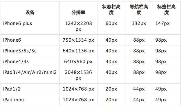 PS:在最新的iOS7的风格中,苹果已经开始慢慢弱化状态栏的存在,将状态栏和导航栏合在了一起,但是再怎么变,尺寸高度也还是没有变的,只不过大家在设计iOS7风格的界面的时候多多注意下~