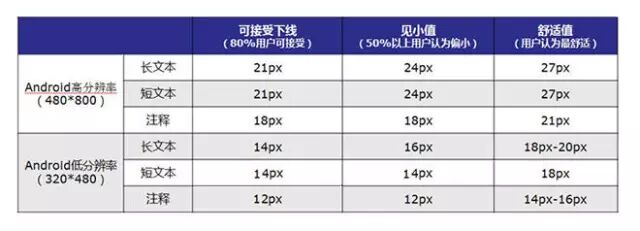 下图是百度移动用户体验部(MUX)做过的一个小调查,可以看出用户在iOS app中可接受的文字大小。