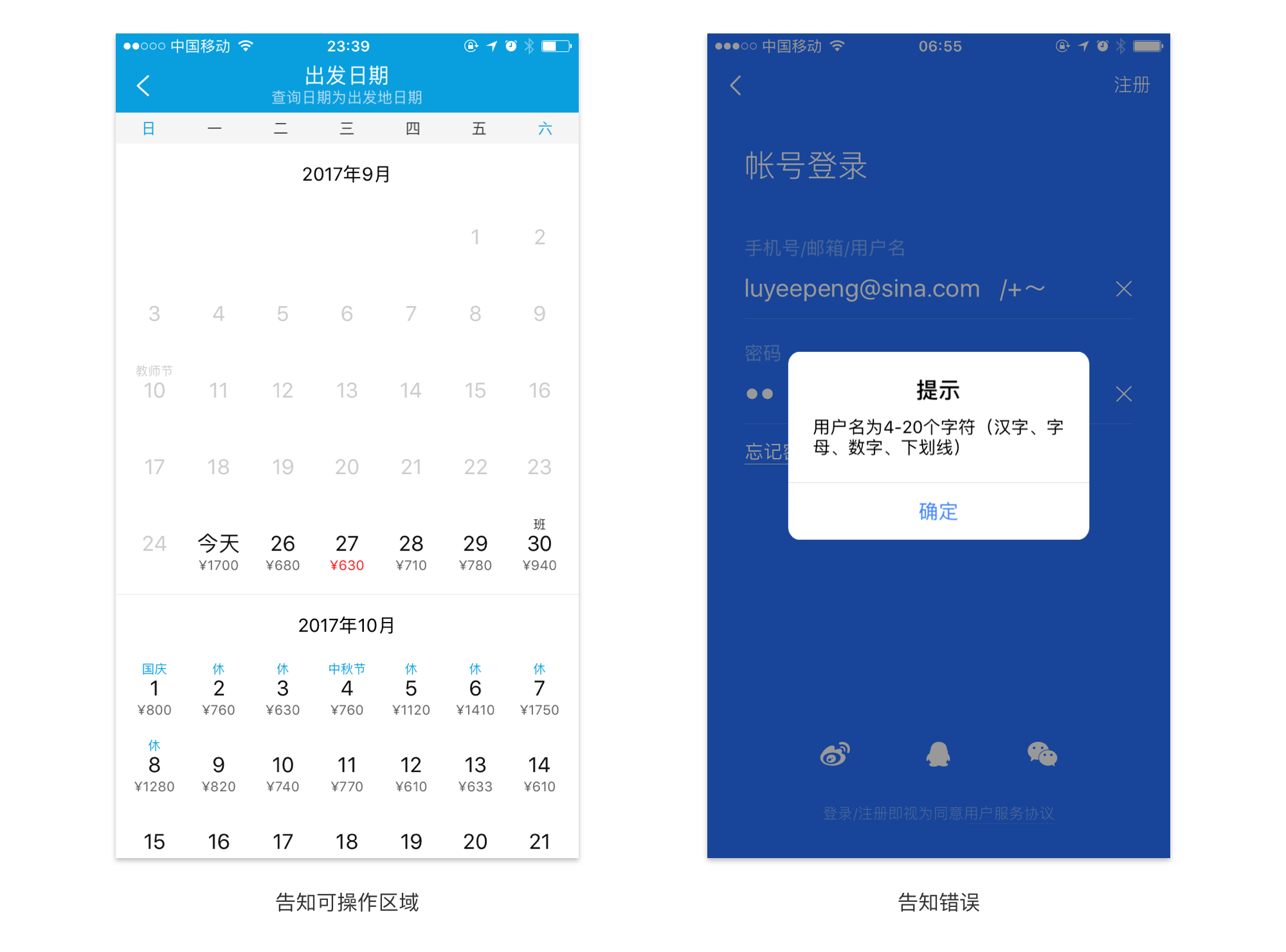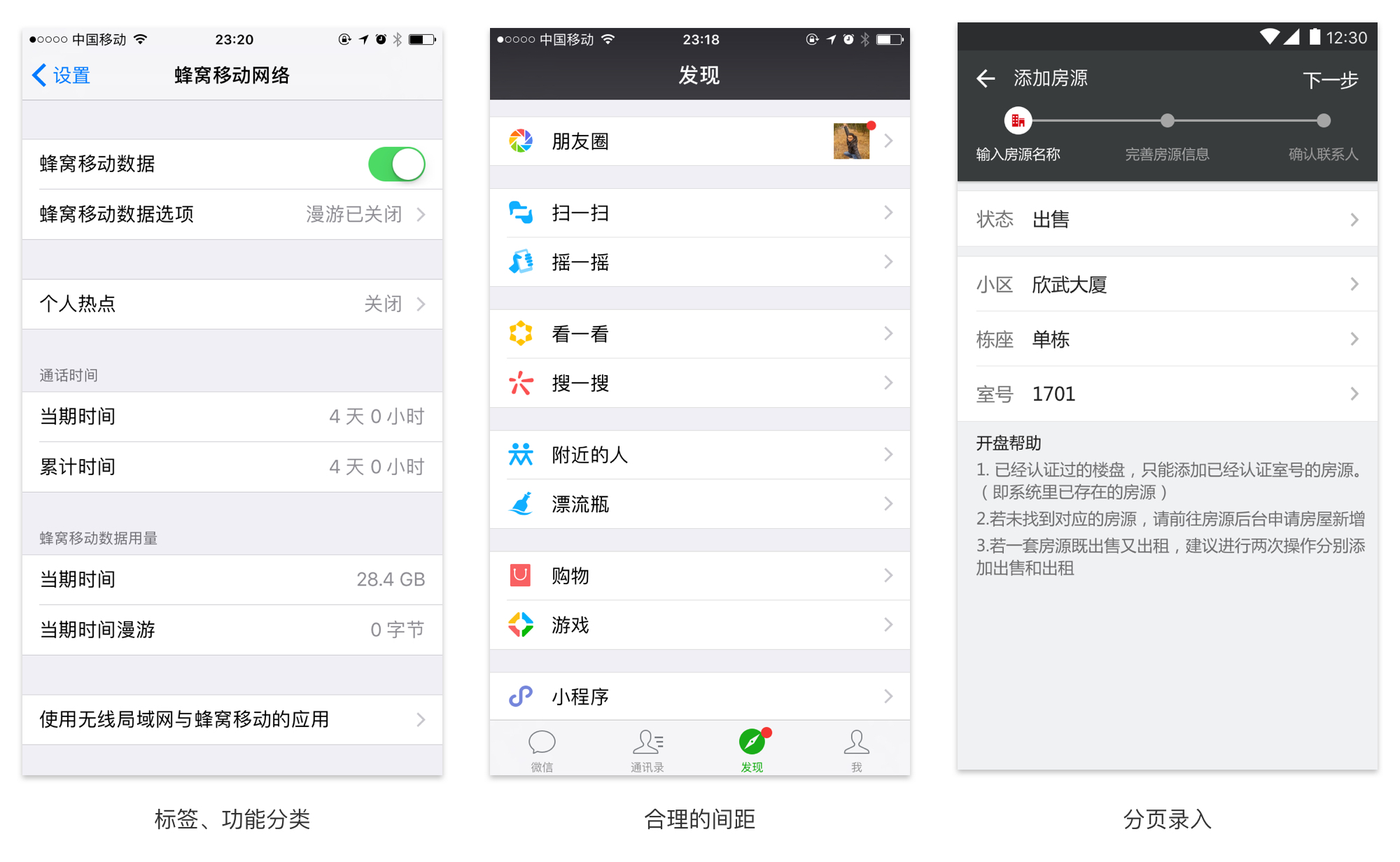 标签的设置,我们有时候会很纠结。移动端的兴起在pc之后,所以很多pc的使用方法就应用在移动端设计上。首先,我们要知道标签的作用是什么,它是对输入数据的归类,对用户输入的一种提示。标签分为图标标签和文字标签,图标标签多用在登录等容易理解的场景,用户对这些图标的感知度非常高了,但是也要结合后面的提示文字使用,没有提示文字,用户也会一脸懵逼。