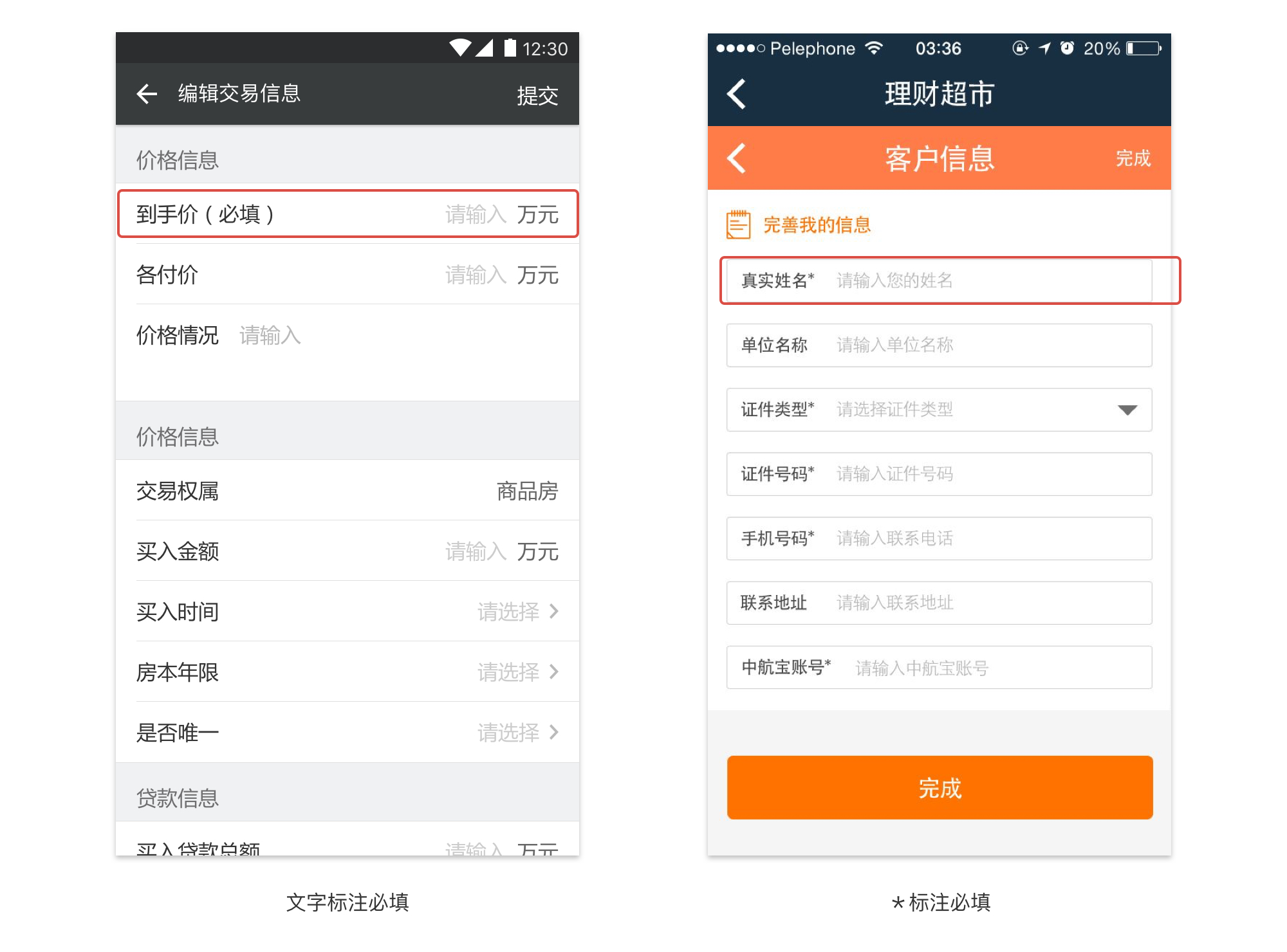 那如何区分选填和必填呢,常见的有