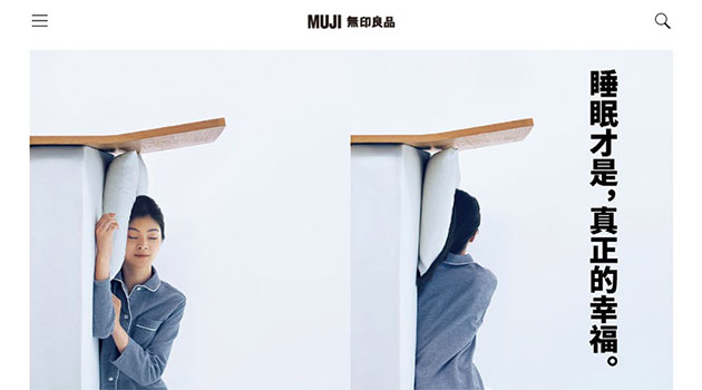 无印良品官网首页无任何动效,鼠标悬停时只是出现一个系统超链接手势,整个网站和品牌调性一致:简约安静。