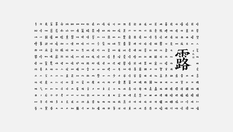 字型设计处理大胆、随性,除了字体比例的不同外,撇捺笔画在处理中“撇”的笔画更加舒展、张扬,而“捺”的处理上浑厚而有力不失字型中的平衡。