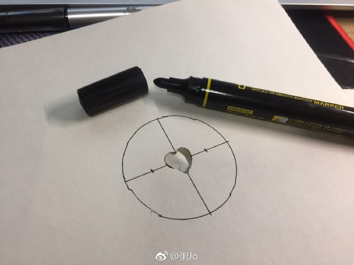 根据小痰盂镜头盖子的大小,在纸上画一个圆