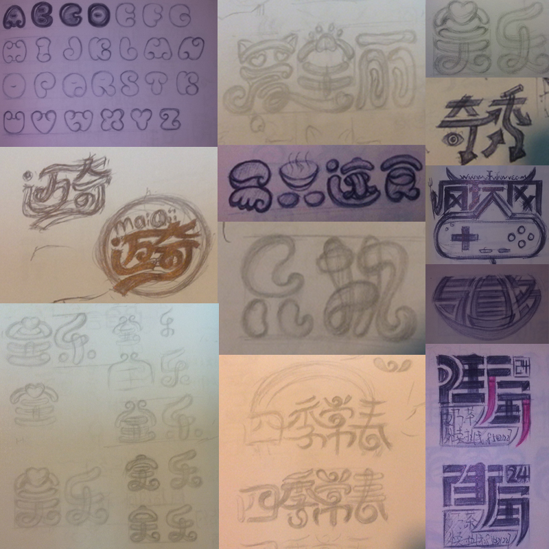 在做字体设计之前 我喜欢先在纸上画一些草图 然后再去AI里操作 我觉得这是个很好的习惯 应该长期保存下去