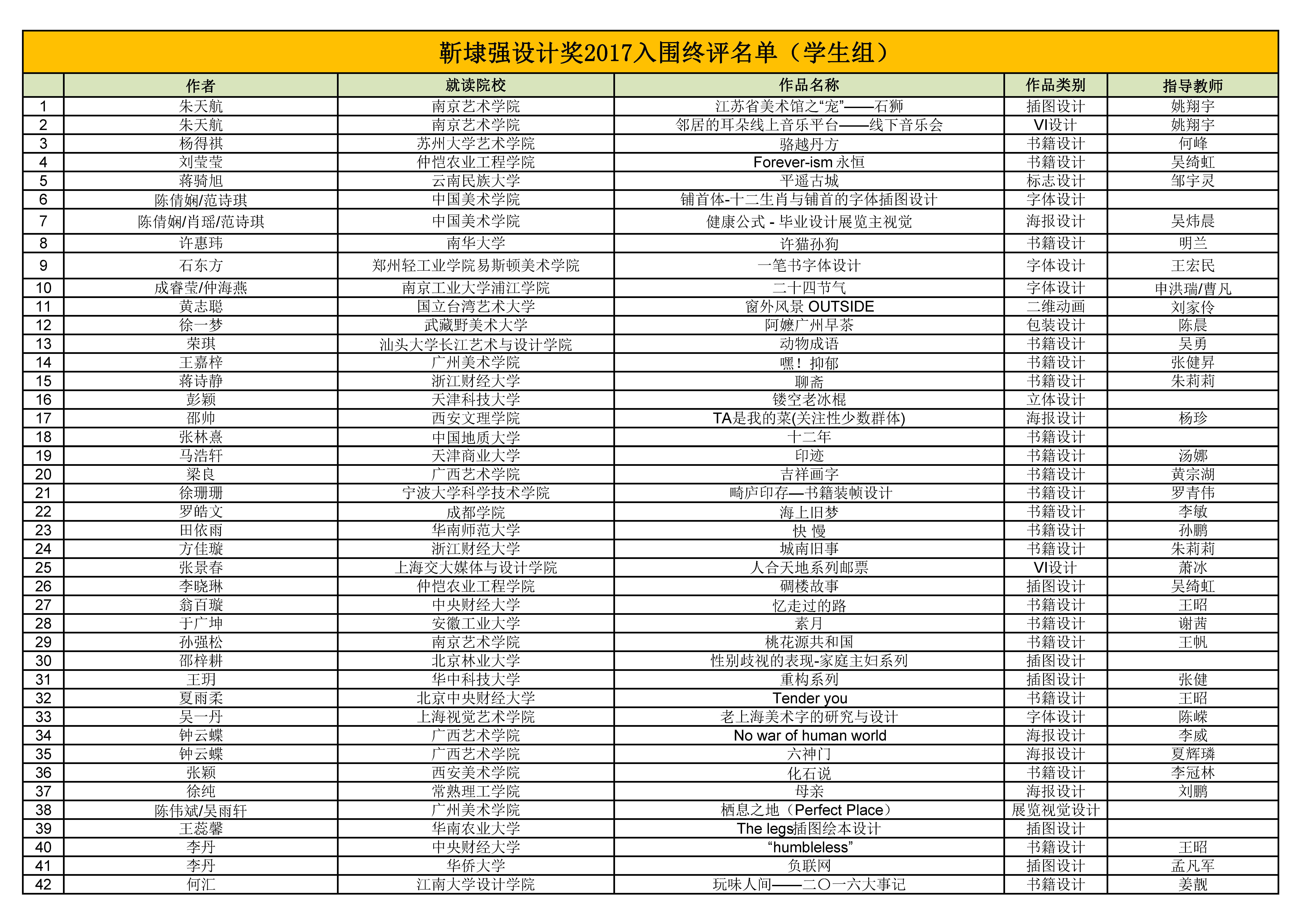 入围名单公布
