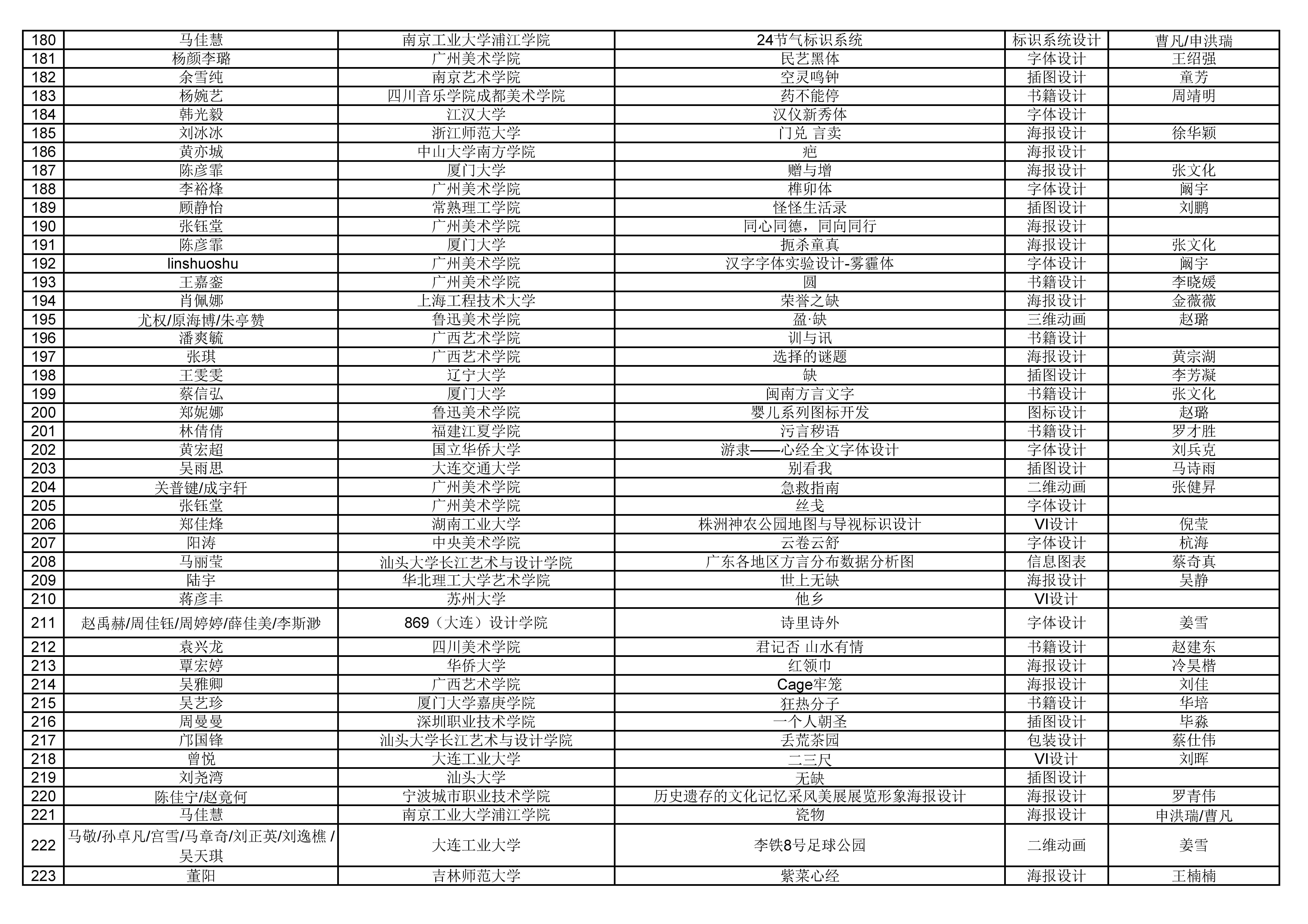 担任本次比赛初评评委的是:中国美术学院博士生导师韩绪教授、深圳市平面设计协会主席许礼贤先生、清华大学美术学院视觉传达设计系副主任陈磊教授、著名信息视觉设计师叶超女士、著名设计机构UDL创始人方建平先生以及汕头大学长江艺术与设计学院蔡仕伟教授。六位评委采用分组投票方式进行评审,经过三轮投票及讨论,最终选出专业组55件及学生组331件进入终评阶段。终评工作将于12月2日进行。敬请留意大赛相关信息。