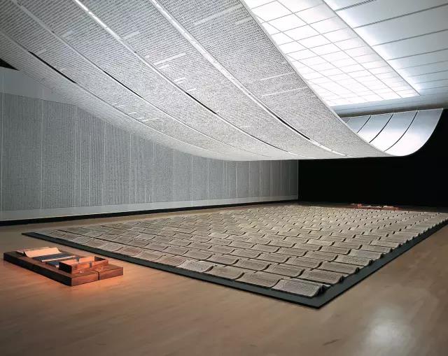 徐冰以汉字为型,拉丁文为体,结合创造了近四千多个“伪汉字。采用活字印刷的方式按宋版书制作成册和几十米的长卷。