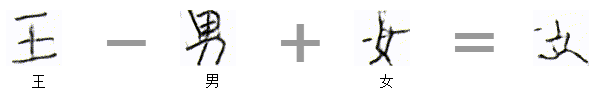 DCGAN虽然不知道汉字图像的意义,但却能能按照数学逻辑执行运算。例如下图中: