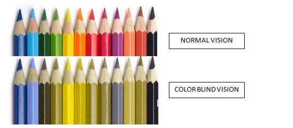 最常见的颜色类型(Protanopia和Deuteranopia)可以看到蓝色。对于绿色或红色的颜色来说,他们无法辨别出来。