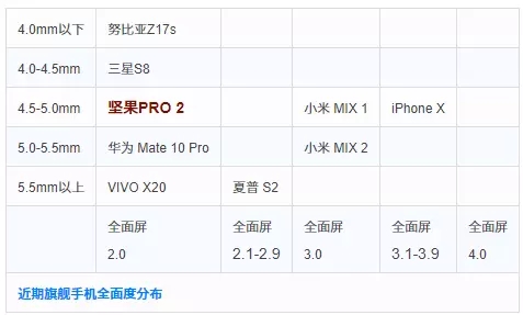 按照之前用过的全面屏全面度评论方法,这次坚果PRO的全面度是全面屏2.0版本的4.77mm(方法在此)。
