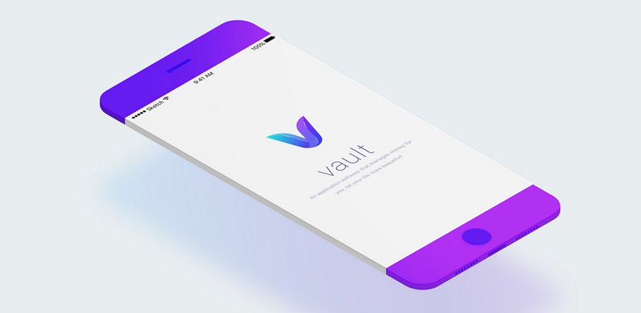 亮点:logo “ V ” 的设计非常巧妙,凸显主题Vault Financial app design,且配色简单。