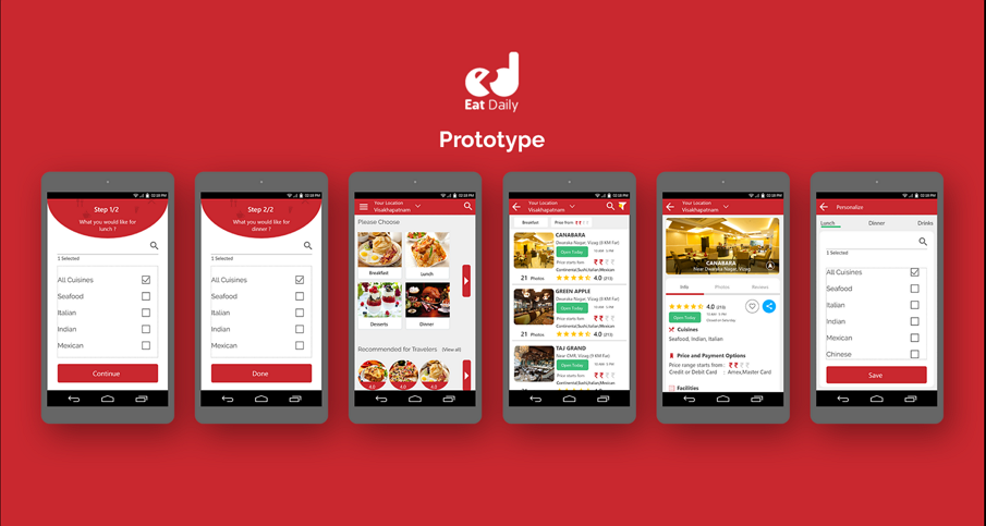 亮点:白色纯色背景和鲜红搭配对比鲜明,红色是美食APP的优先色。
