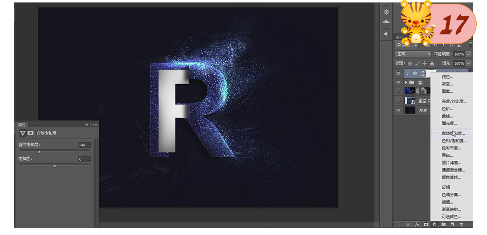 17、将所有可视图层【建组】,建立【自然饱和度】,调整为-44.