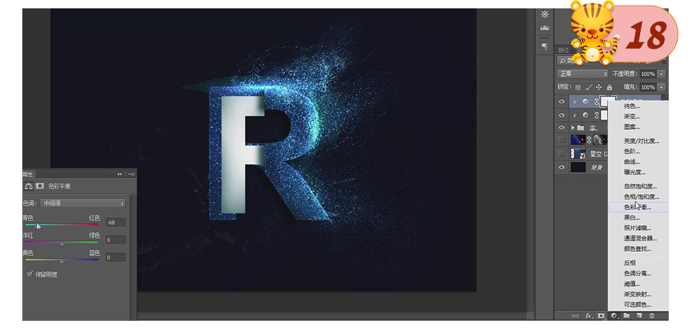 18、建立【色彩平衡】,调节【青色】为68。