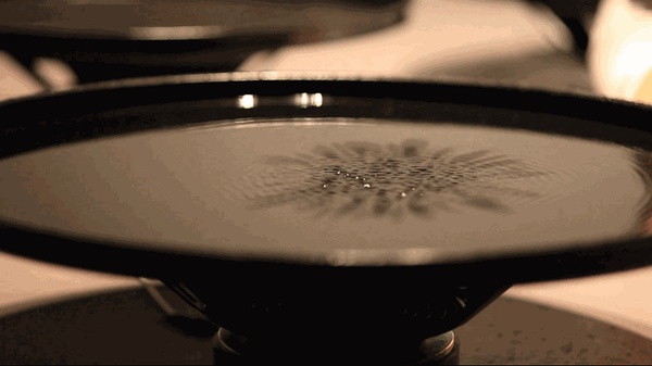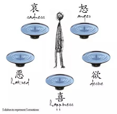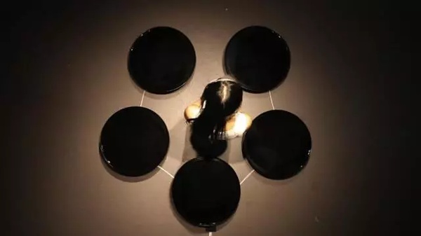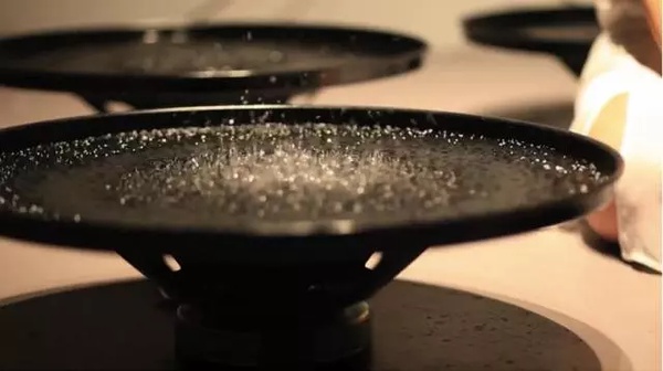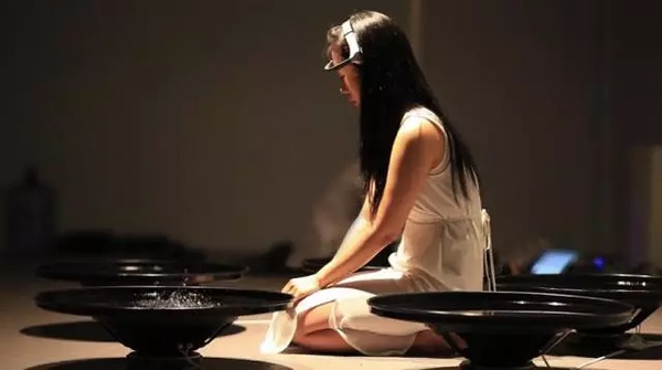尽管收集到的数据是权威的,但对于普通人来说却很难理解。为此,Park做了一个简单的视觉比喻,帮助体验者清晰地看到自己的大脑活动。她把5个24英寸的金属盘放置在14英寸的扬声器上,在盘中盛一半水,5个盘子以圆圈的形式摆放在体验者的周围。其中,一个盘子代表一种特别的情感,摆放成圈代表无限的统一,而圈中人则控制着意识启蒙。