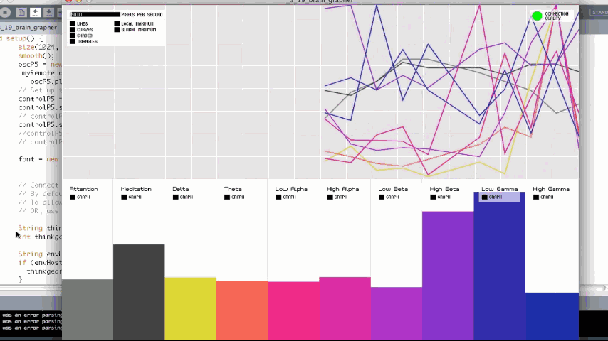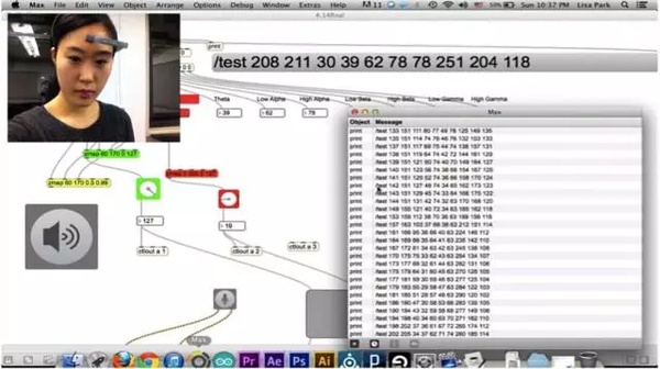 Park使用NeuroSky脑电可穿戴设备、进行大脑-计算机技术实验操作,该设备可以测量眼动以及大脑的δ、θ、α、β波。自制处理软件用来实时收集数据,并以图形、表格和数字的方式显示。