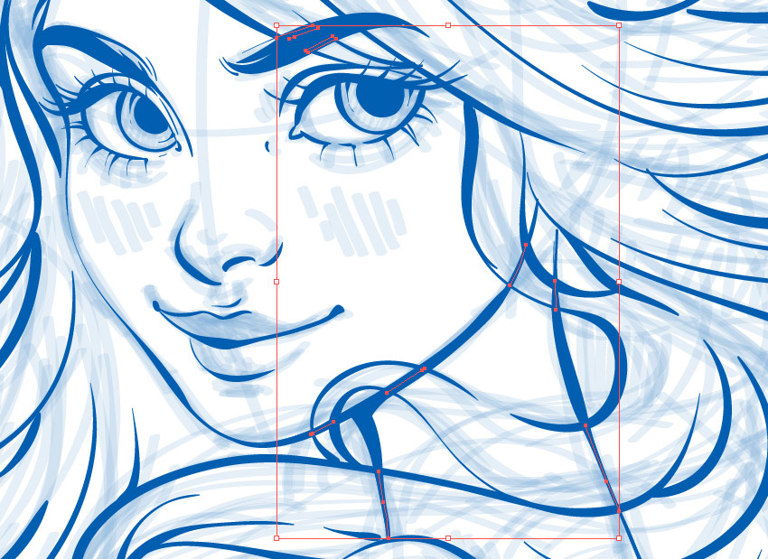 首先, 组(Control-G) 你的素描。将草图的不透明度降低到50%,使其变得半透明。