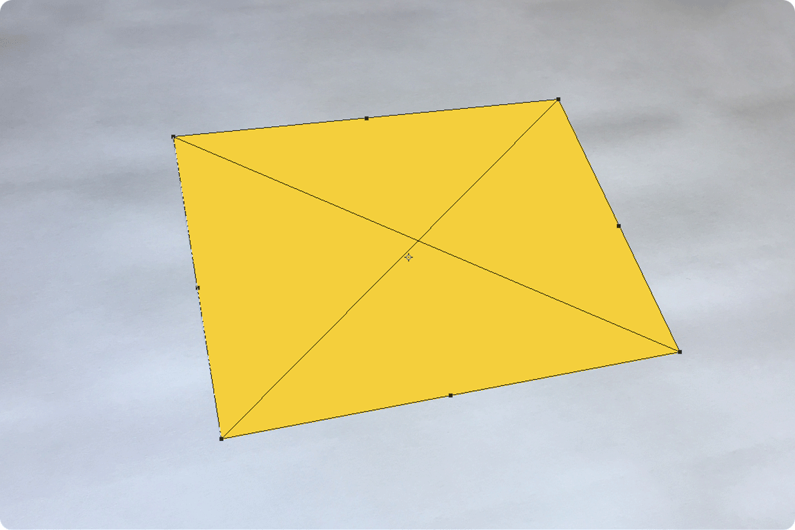 Logo这时已经自动调整好透视角度躺在了背景上,接下来我们就是要对它进行一系列的操作来达到我们想要的效果。