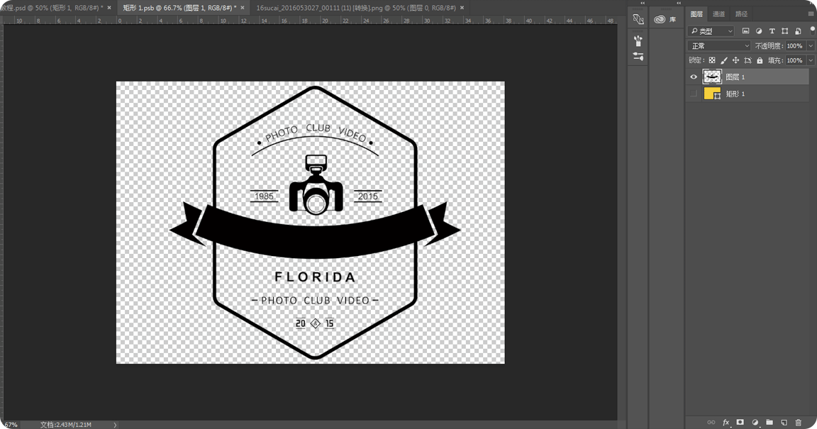 这个logo素材也同样提供给你们了,现在把它拖到智能对象中并调整好大小,同时把矩形前面的眼睛关掉,Ctrl+S保存、退出。
