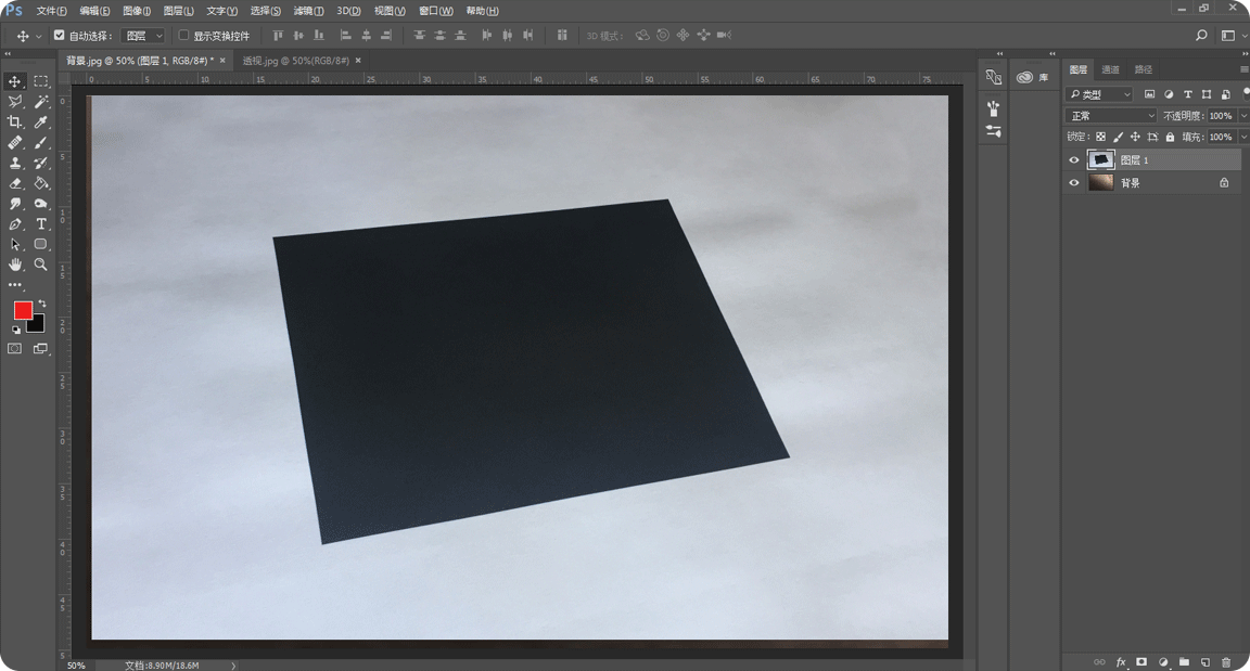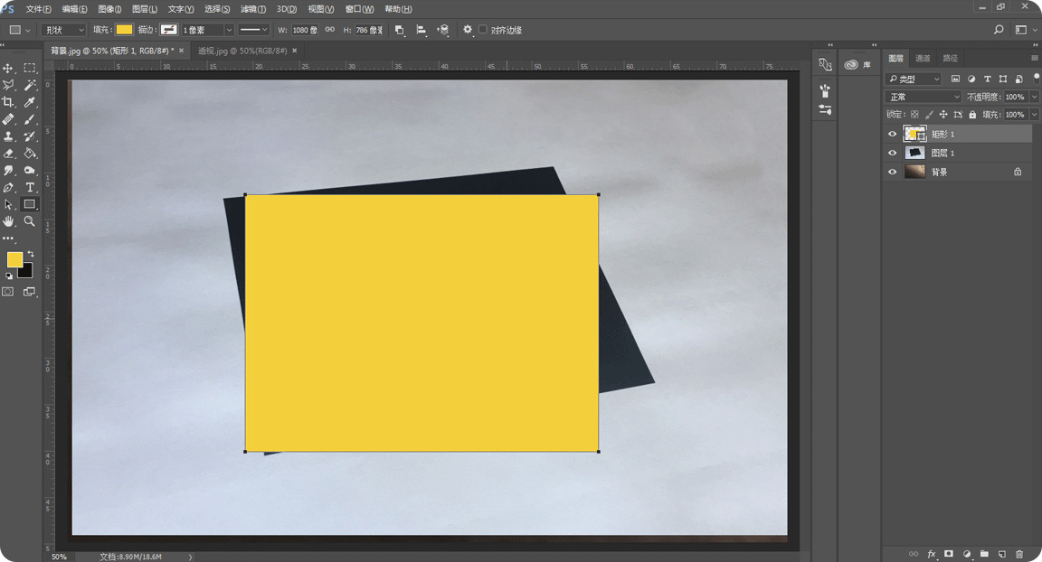 接下来新建一个图层,并在这个图层上绘制一个矩形,大小跟透视图的矩形大小差不多就可以。