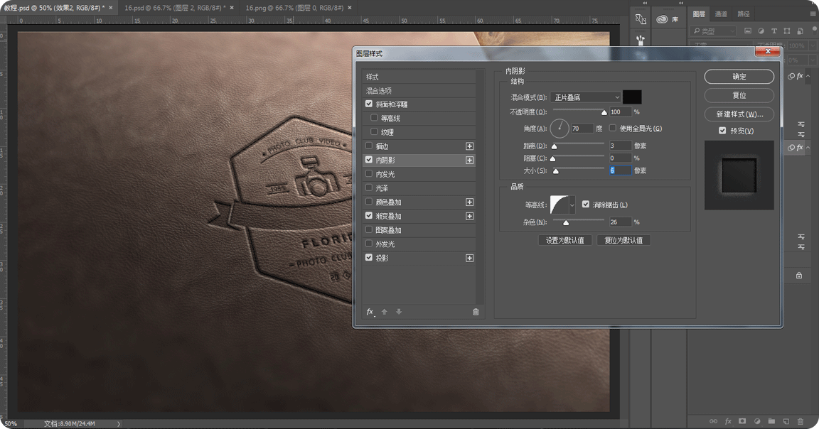 【自制样机教程】简单实用的皮革印花LOGO样机,别说你不会,让同行知道就糗大了!