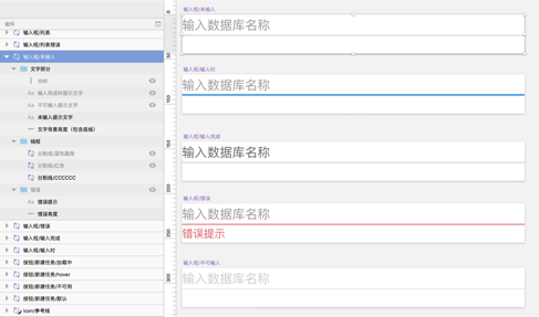 结构:输入框组件和文字、icon、图片等结合使用。(可直接切换输入状态节省设计时间和避免重复设计。)