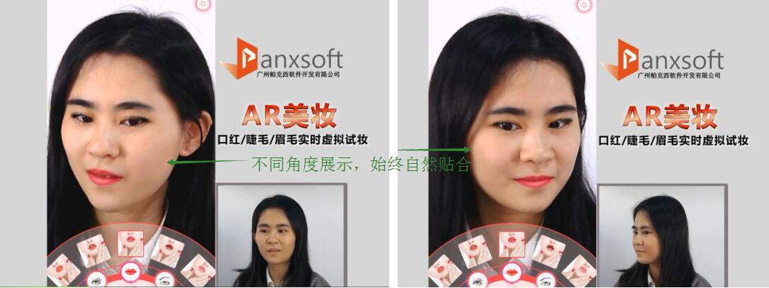 人脸识别和面部追踪精准,左右随意展示,妆容始终自然贴合。