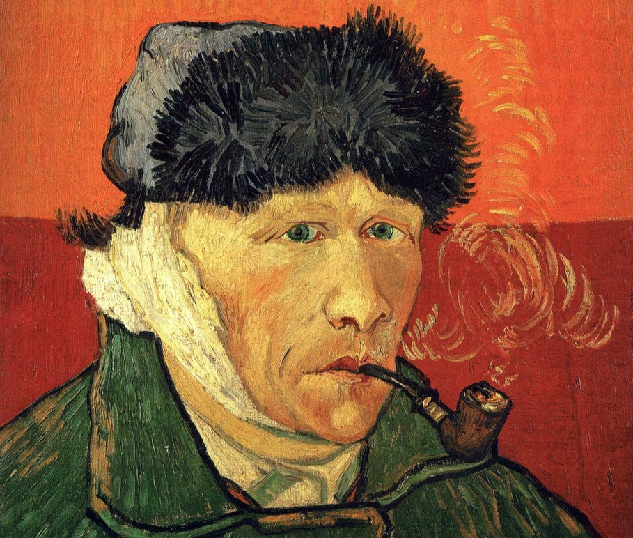 梵高与高更的性格毕竟有太大的差异,一个洒脱追求本心,一个讲究规矩条框,在他们相处的两个月内,争吵不断。梵高再次陷入了精神崩溃边缘。一次,梵高拿着剃刀跟在高更身后,高更吓跑了,赶紧搬出了黄房子。梵高受不了好友的离去,割下了自己的耳朵,寄给了妓女。伤势好转后,梵高画出了包扎耳朵的自画像。