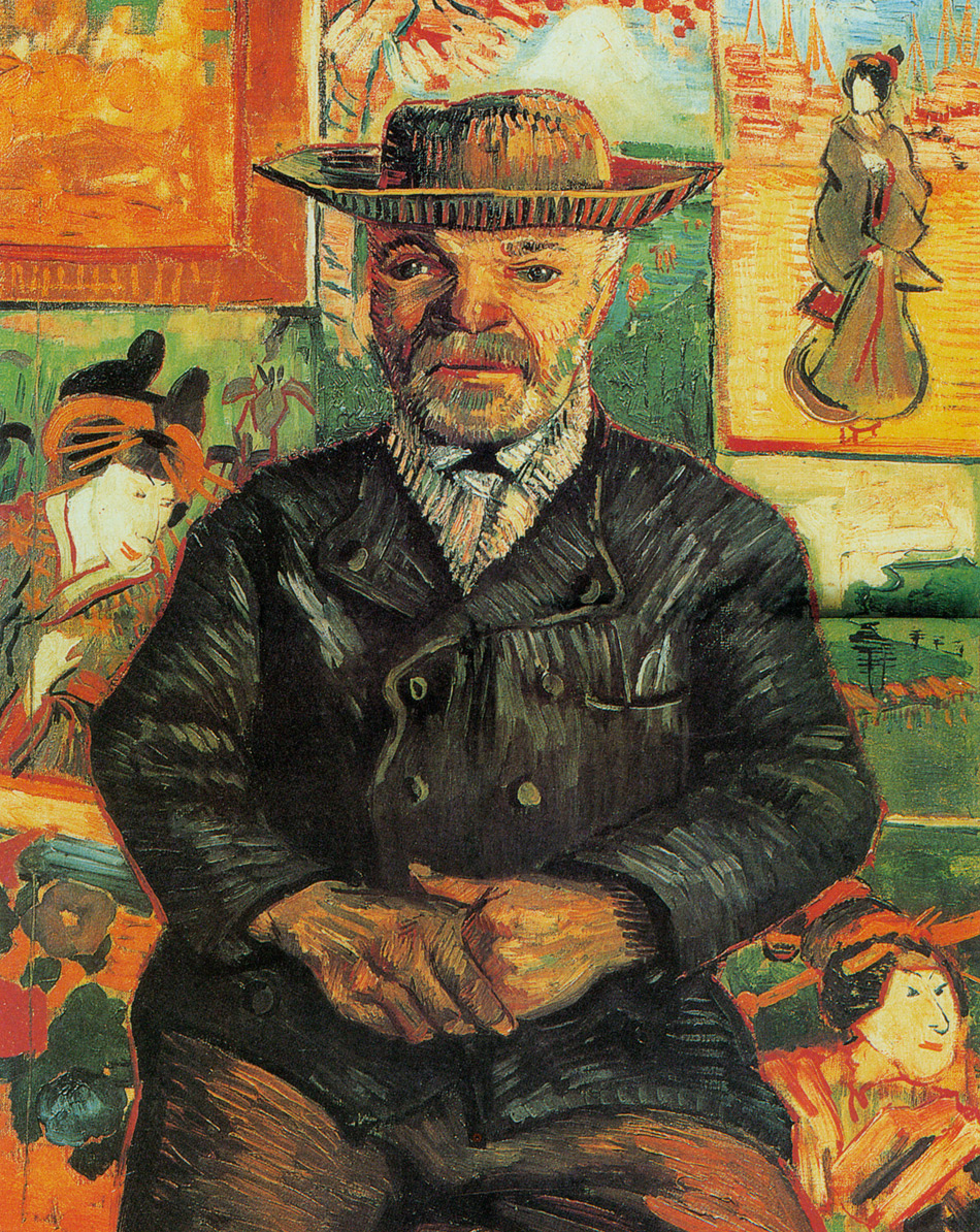 在巴黎,通过弟弟的引荐和艺术圈,梵高认识了许多对他影响至深的人,包括此时作为股票商人的高更和画具老板唐吉老爹等。唐吉老爹喜欢日本浮世绘,他的店里成列了许多浮世绘的版画,也是在这个时候,梵高了解到了在遥远的东方,还有这样多元和神秘的艺术。