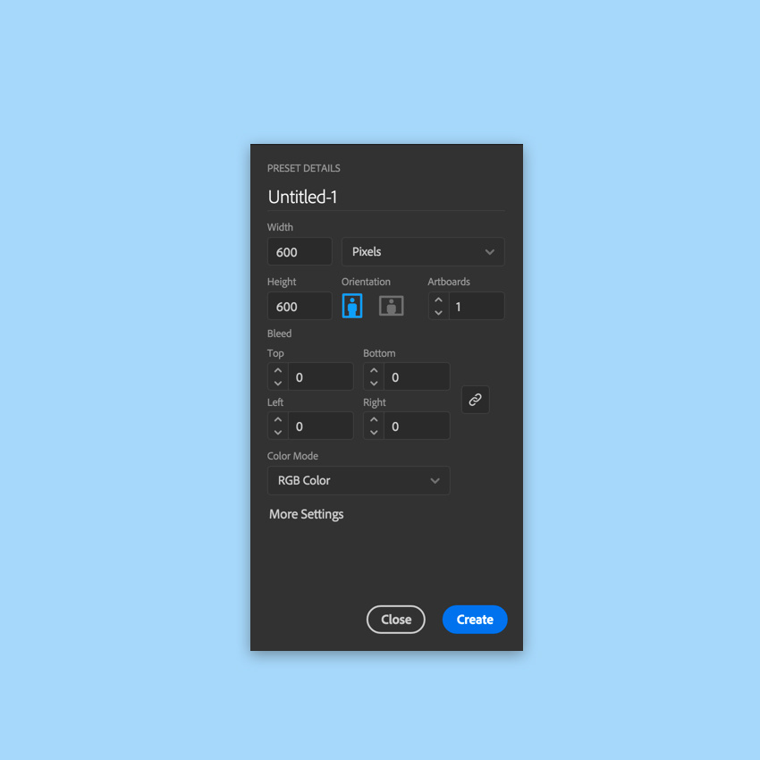 让我们开始创建一个新文档600 * 600像素的大小和RGB色彩模式。使用矩形工具(M)制作相同尺寸的矩形,并为背景填充浅蓝色。
