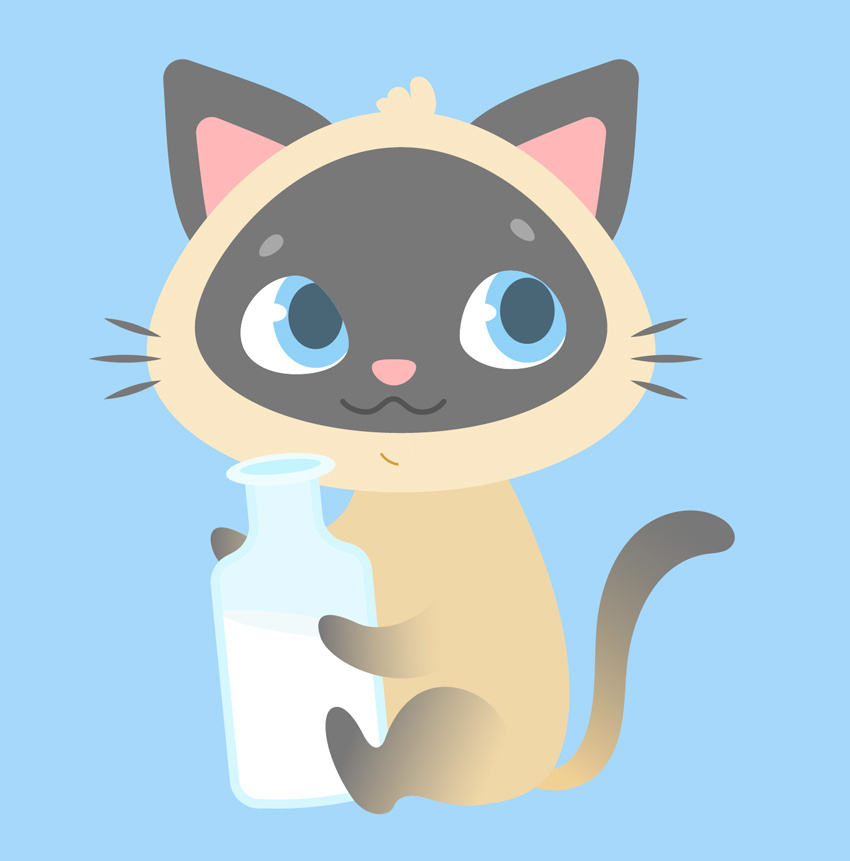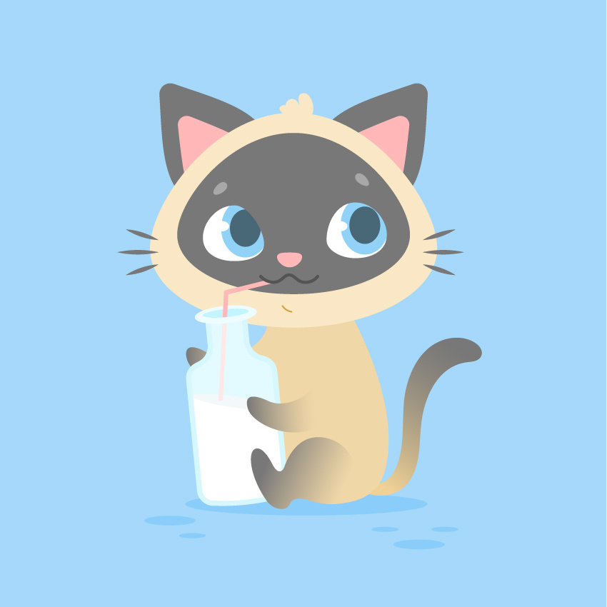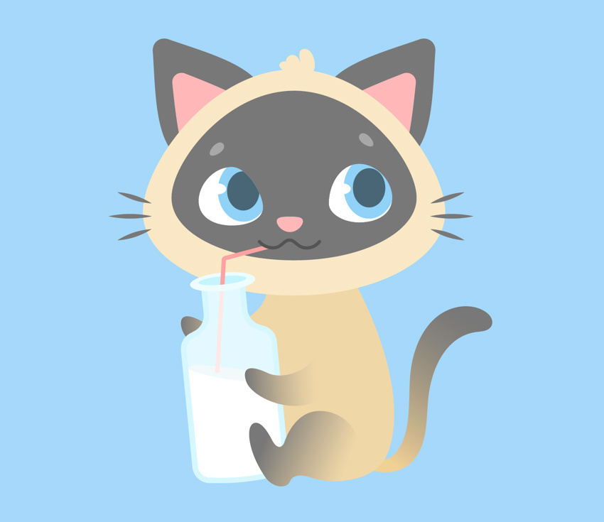 你可能已经知道,猫其实是患有乳糖不耐症的,因此对牛奶毫无兴趣。然而,当我们创造一个想象中的孩子的插图时,我们可以画出任何我们想要的东西,无论是奶昔还是绿色的冰沙,或是苏打水,这取决于图像的目的。 在我们的例子中,让我们的小猫成为一个奶昔的情人!