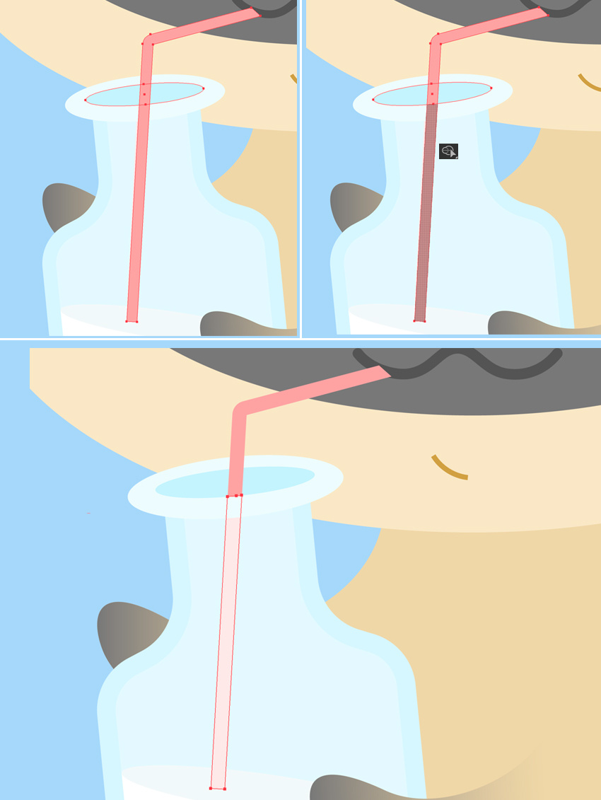 这就是现在看起来的样子。不要忘记把嘴巴形状放置到前面(Shift-Control-]),覆盖吸管的尖端。
