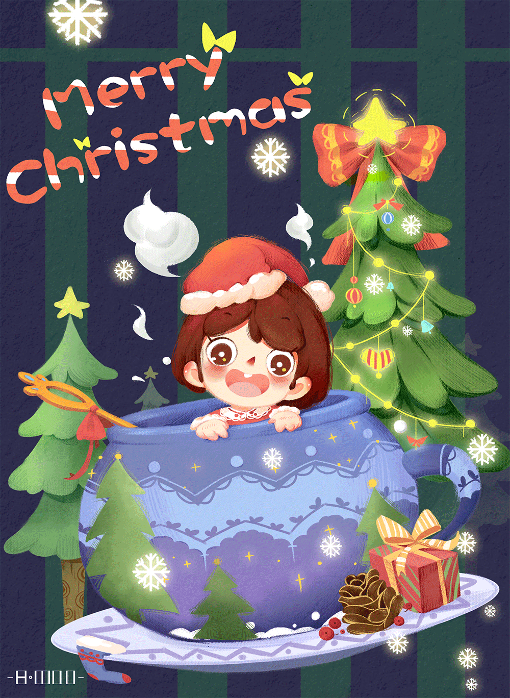 经过构思,给大家绘制出了一张可爱的圣诞贺图