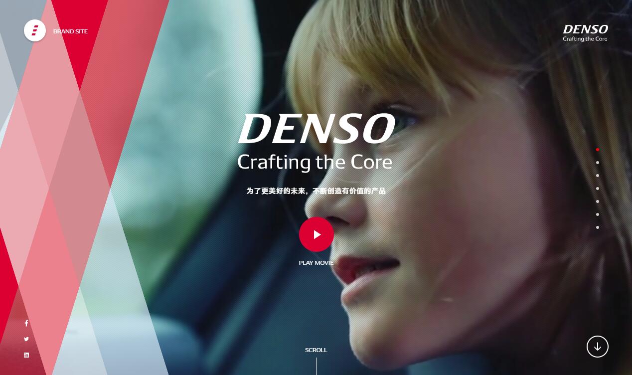 垂直式的滚动在html5网页中运用广泛,很多设计师很喜欢用这样的设计,将一些动画特效和垂直式滚动导航相结合,可以达到一种新的视觉效果。一起看看DENSO Brand site的官网,里面结合了很多特效。