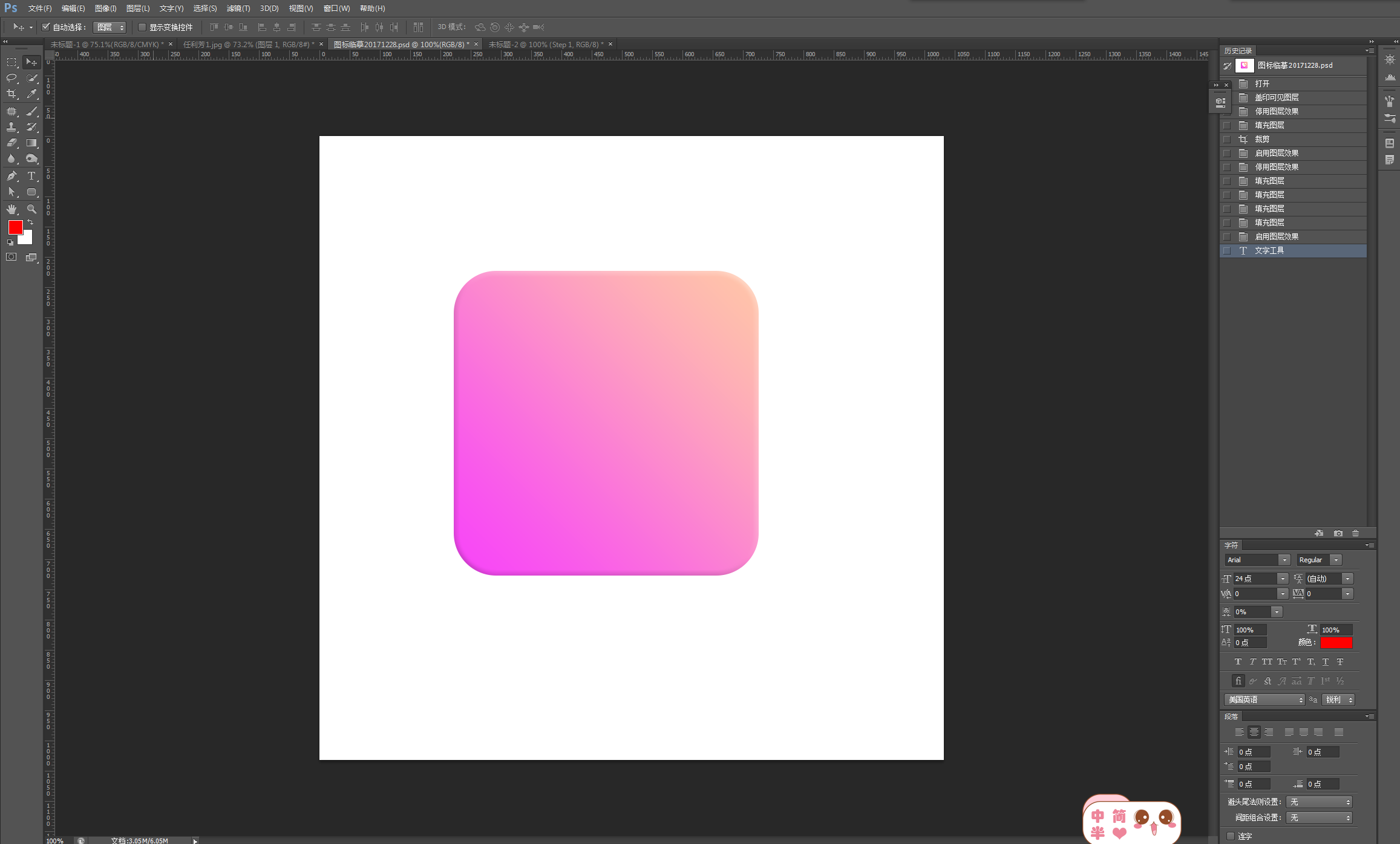 第二步:使用圆角矩形工具,半径70px,按住Shift键,建立圆角矩形