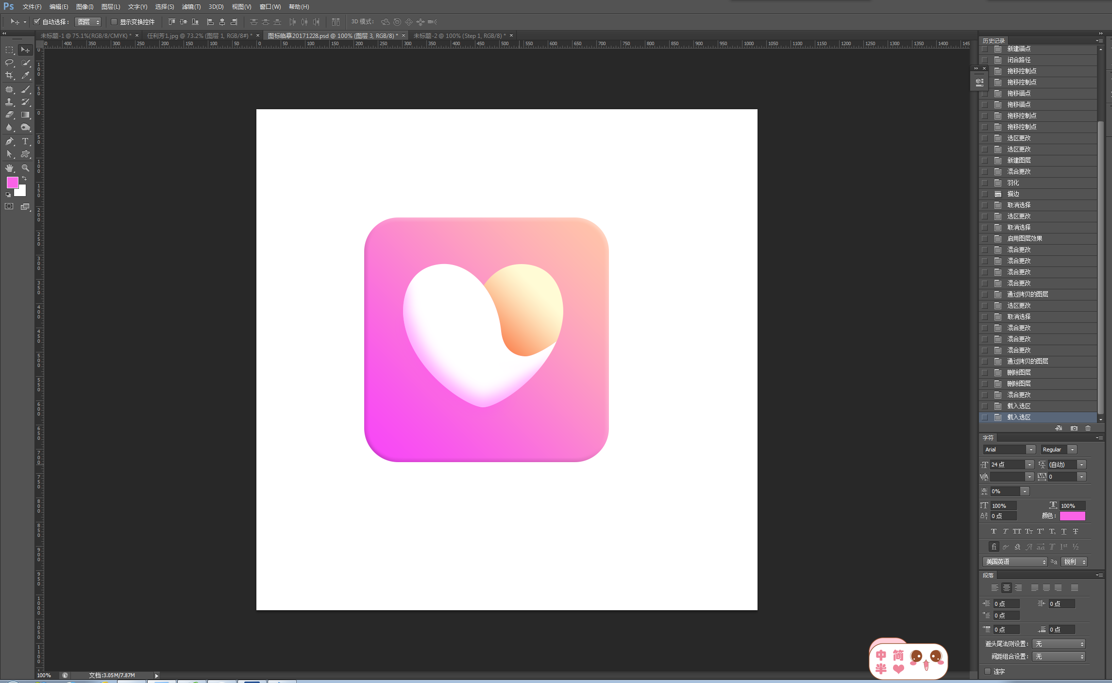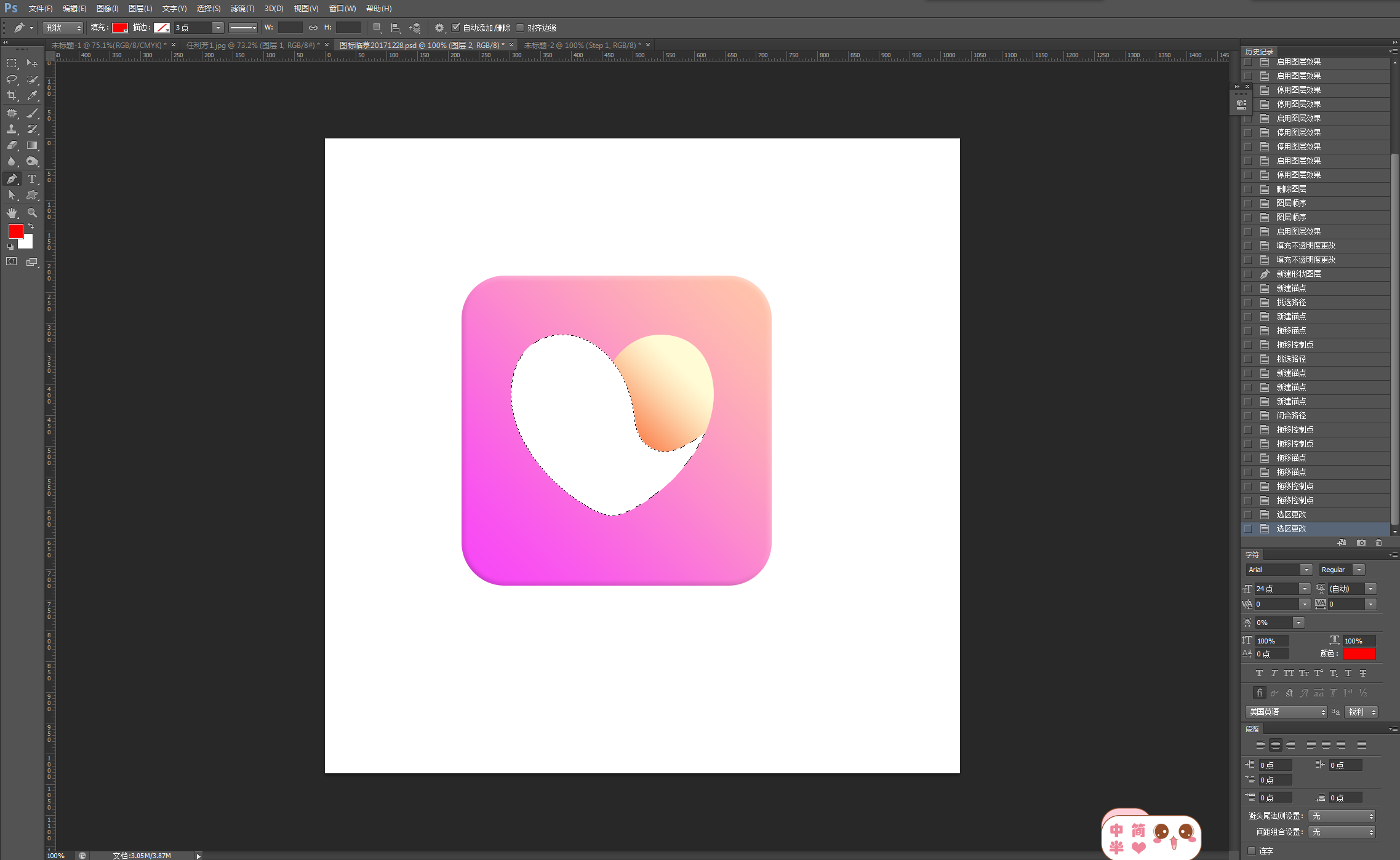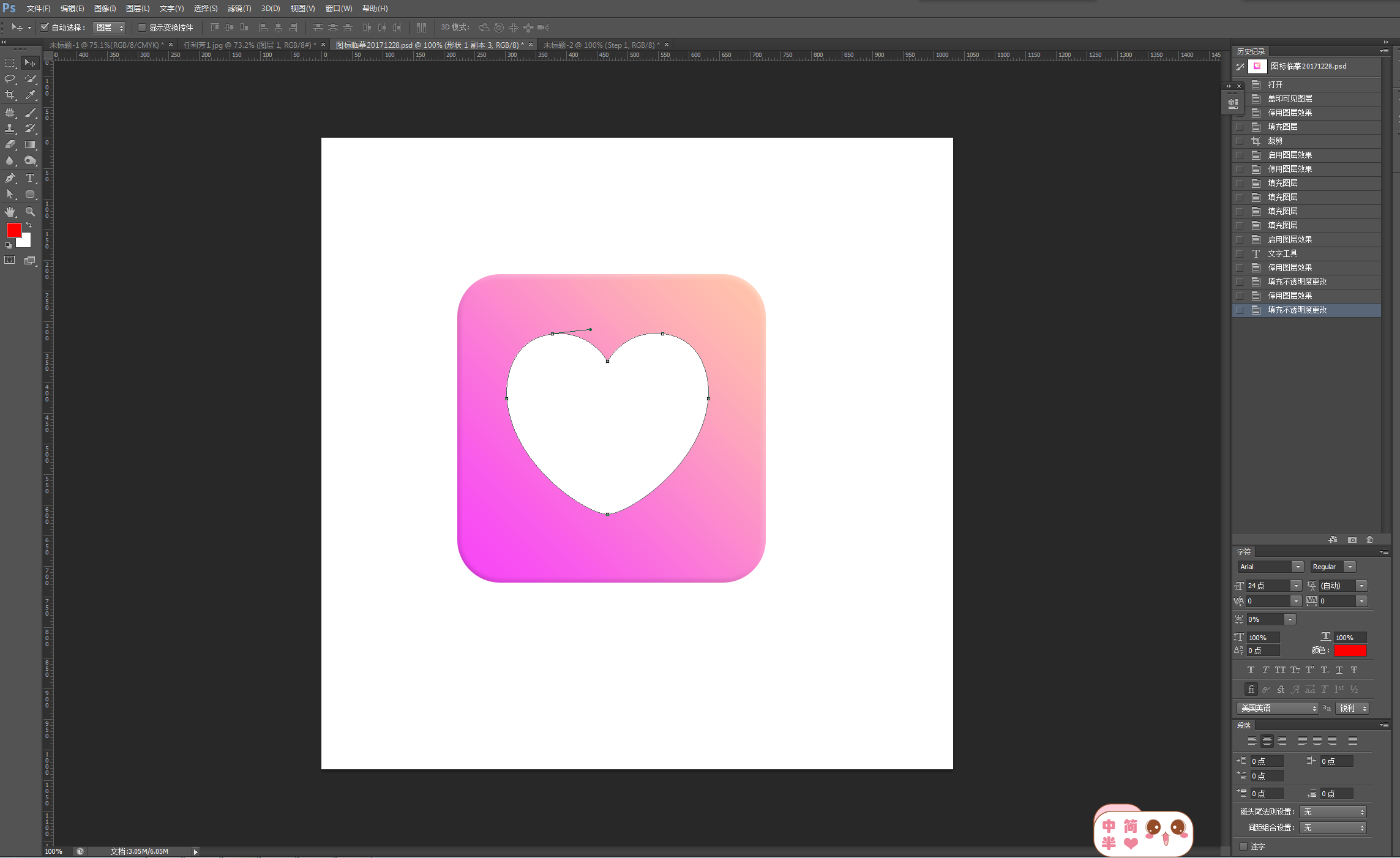 第四步:画爱心,可以用钢笔工具勾勒,也可以用自定义形状工具画出来,再修改