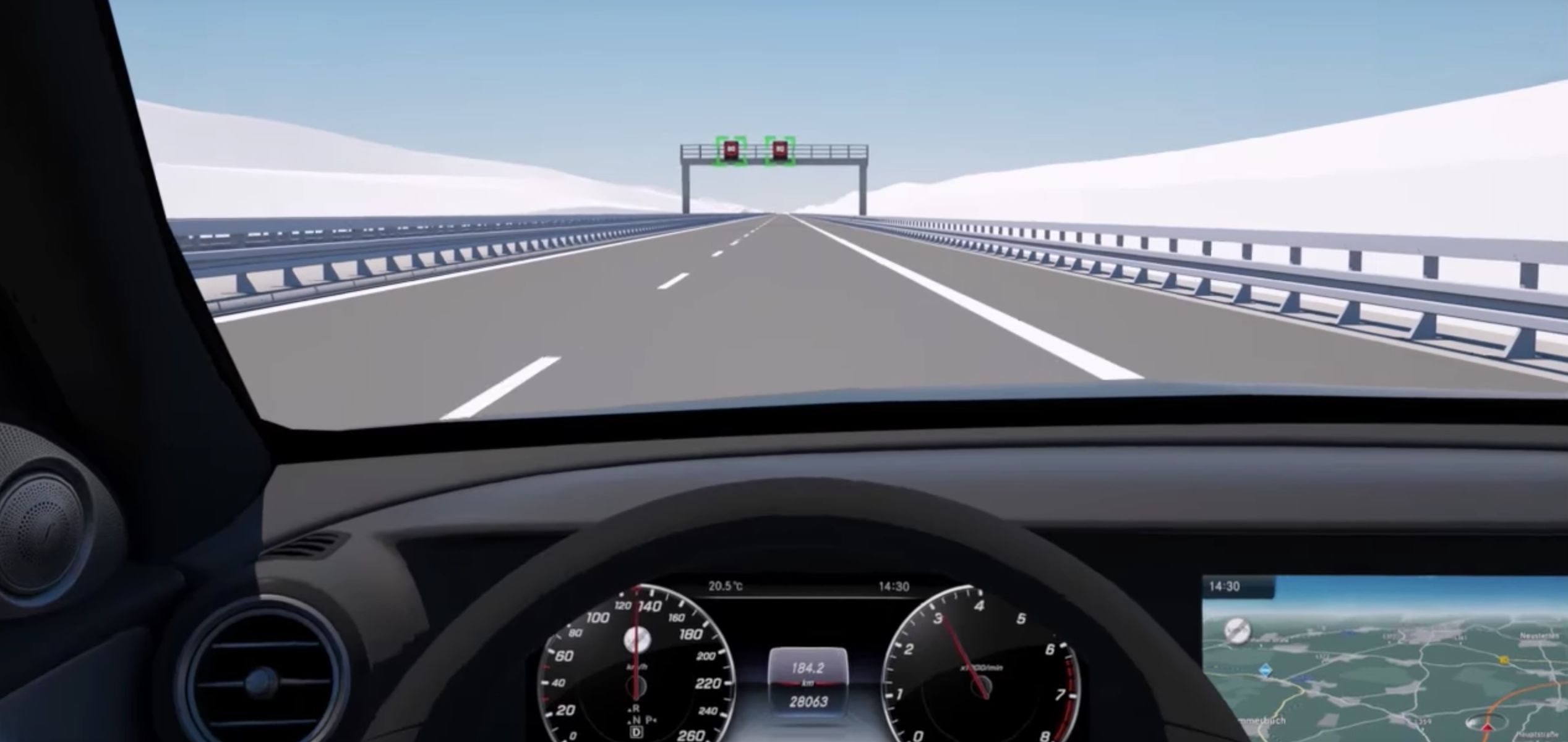 ▲ Mercedes-Benz E-Class 安全驾驶场景双屏示意图