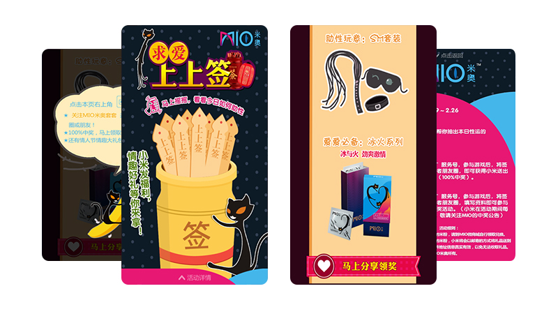 亮点:春节极火的摇签活动,摇一摇手机,就会摇出求爱上上签,摇出的签文和产品结合,用户在娱乐的同时,产品信息也植入用户脑海,最后填写信息资料参与活动。