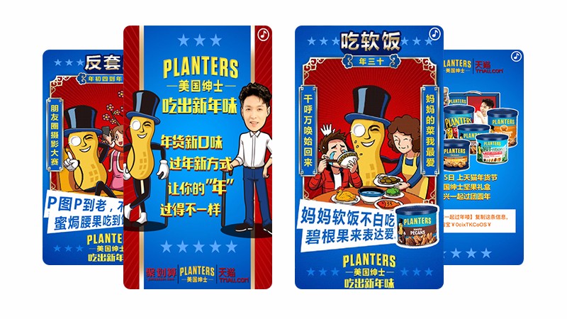 亮点:用对联的方式来体现,营造出浓厚的过年气息;加上高颜值的张艺兴一起在过年季节送上不一样的坚果,配合“绅士先生”萌萌哒的造型,圈粉无数。