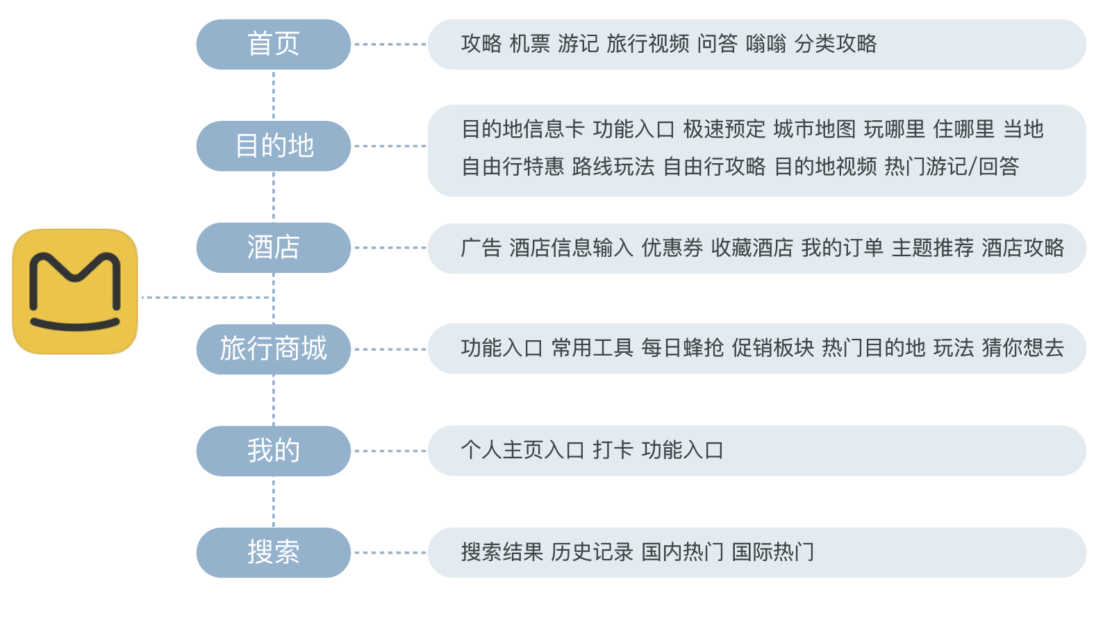 竞品分析的步骤如下,以蚂蜂窝APP为例简单示例,