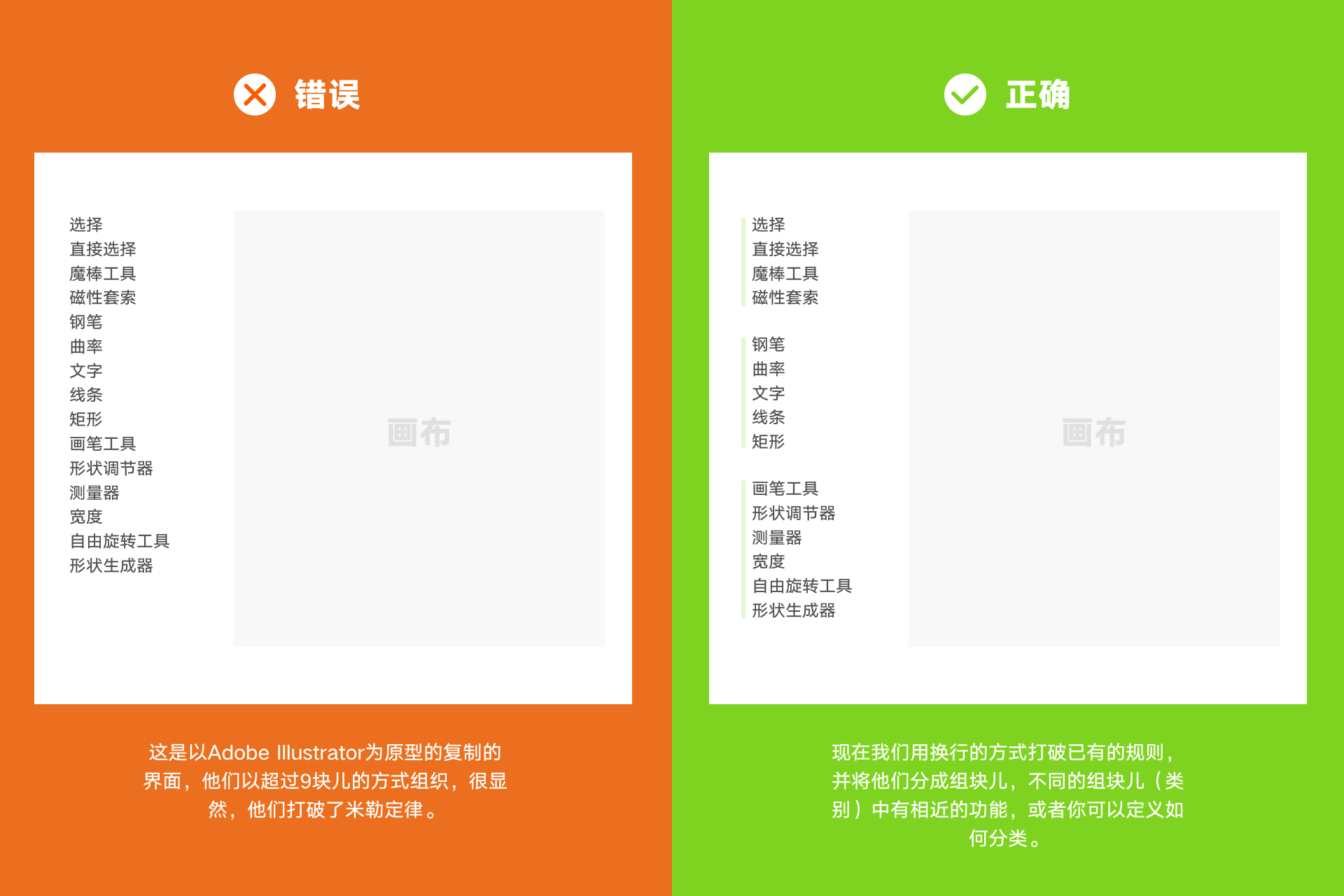 信息组织尽量不要超过9个类别,尽可能的少