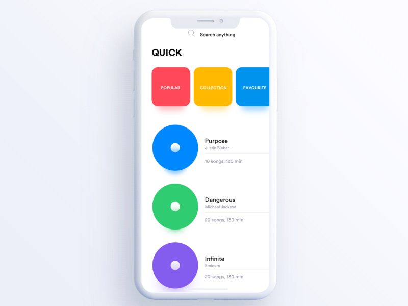 我设计app时,希望用户第一眼就能理解这个app。颜色,形状和大小给了一个app最主要的特性。我选择这些特征去满足用户。在白色背景下,每张专辑都有最主要的颜色,每个图标都有标准的形状。