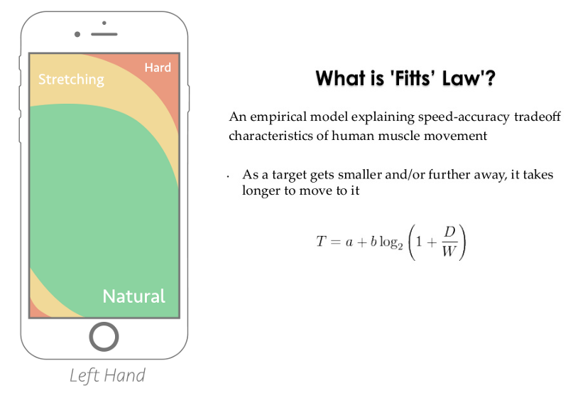 菲特定律是一个解释人体肌肉运动的速度与准确性的实证模型。当点击目标很小或者距离很远,需要花更长的时间才能点击到。