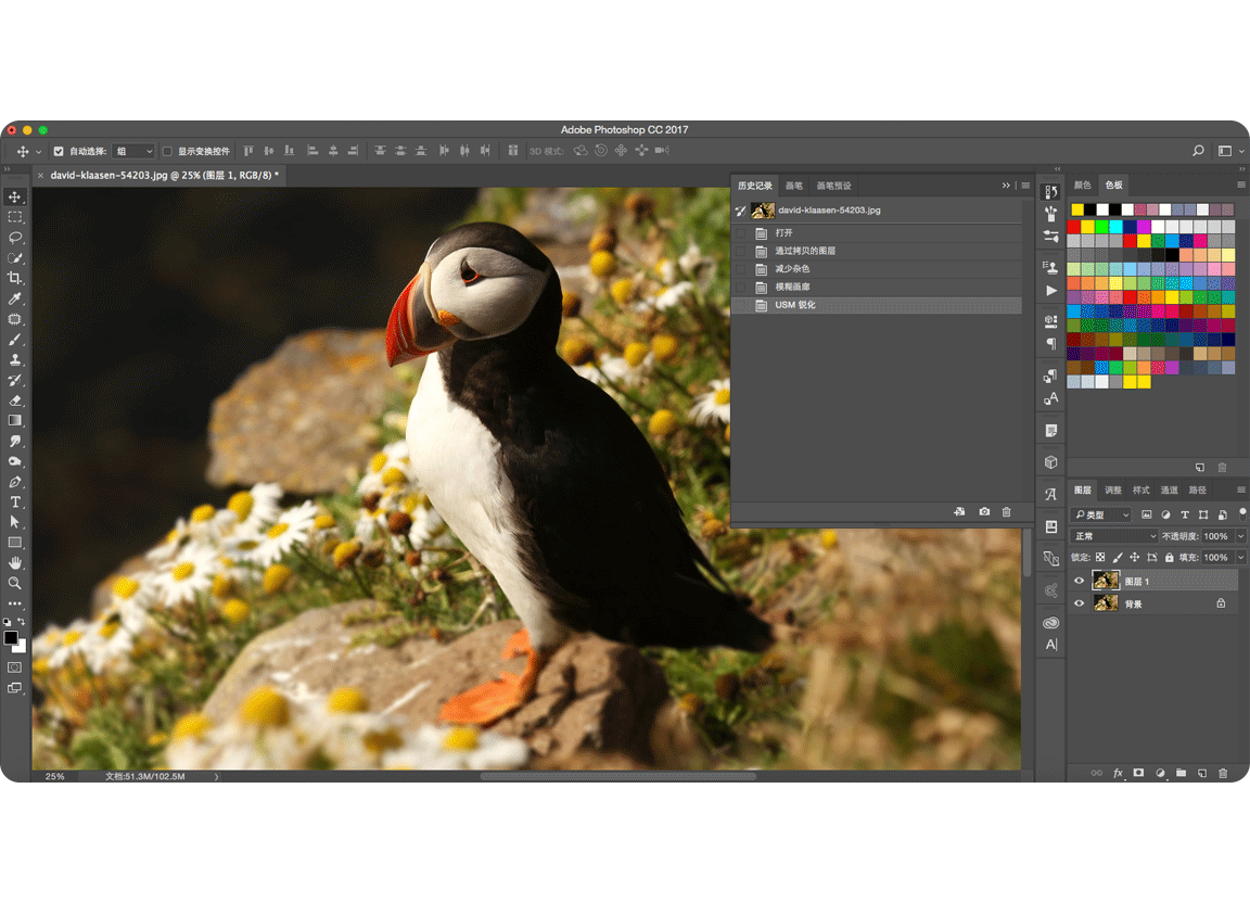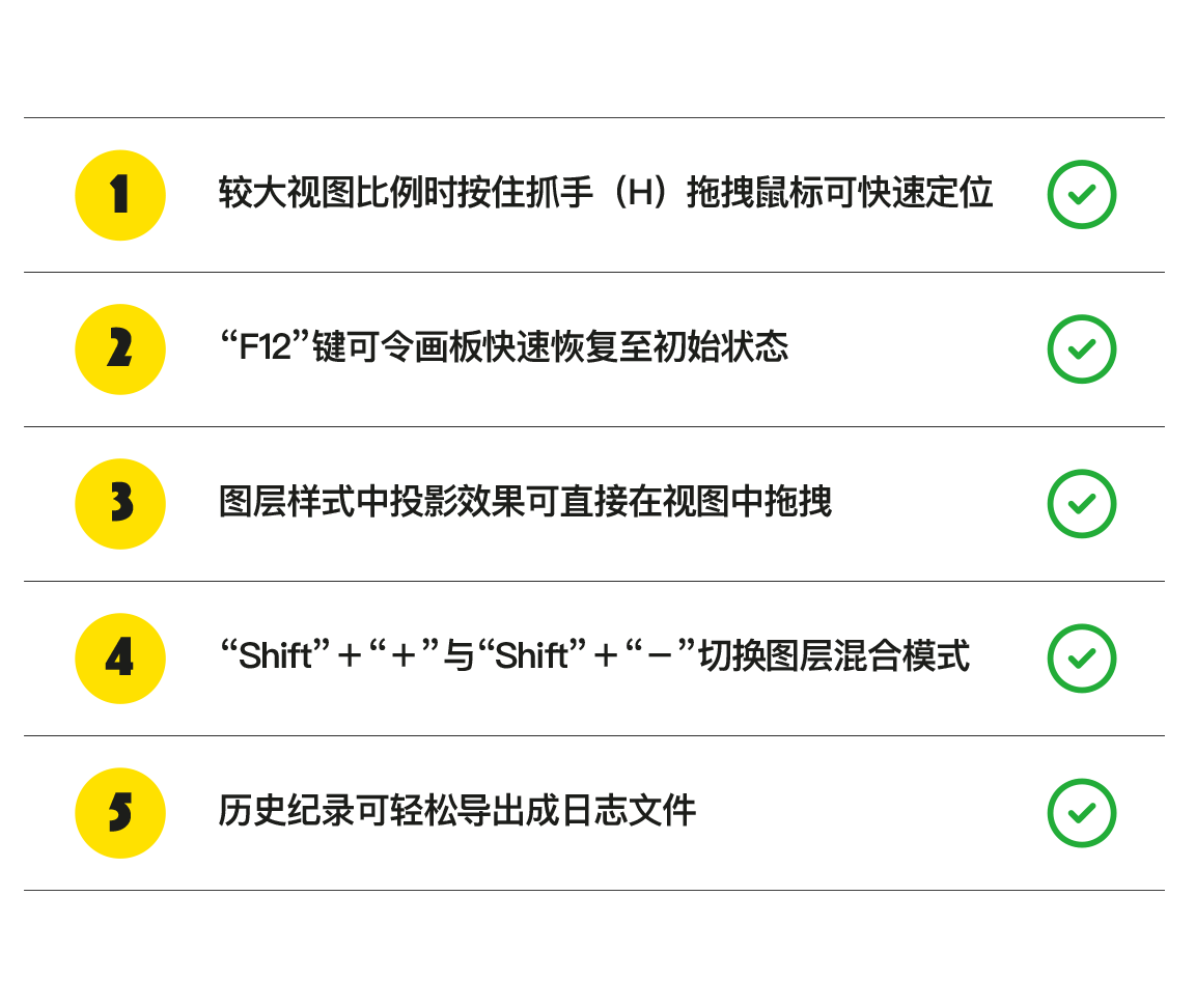 还有一些小伙伴手法老练一些,可能会直接打开历史纪录面板,直接点击到初始的步骤那里查看,emmm…这个办法也是可行的,但是你不是还得再多开个面板做操作么,虽说比关眼睛的办法高级点了,现在的问题来了,能不能有更逆天的办法呢?那当然是有了,只要一个按键就能解决。